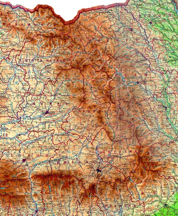 Carpatii Orientali - constituie sectorul estic al Carpatilor Romanesti din cadrul lantului carpatic. La nord, ajung pana la granita tarii; la sud, pana la Valea Prahovei; in vestul (V) lor se afla Depresiunea Transilvaniei iar in est (E) Podisul Sucevei, Subcarpatii Moldovei si Subcarpatii Curburii. Muntii sunt delimitati intre ei de depresiuni mai mari sau mai mici(asezari joase) dar si de vaile raurilor, paraielor (rauri mici) sau izvoarelor .